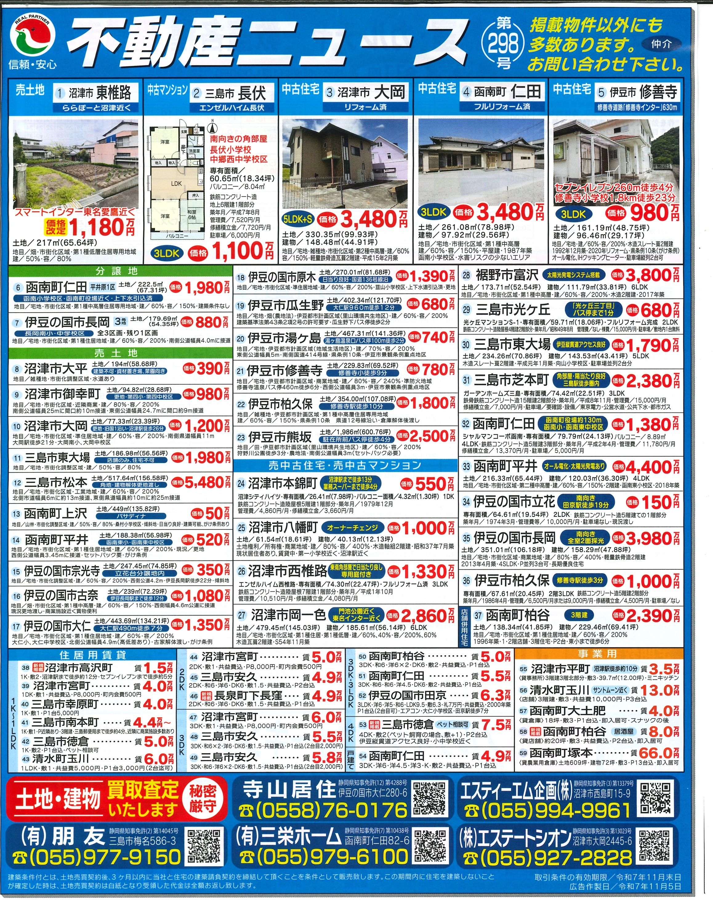 寺山居住は伊豆の国市を中心に静岡県東部でアパート・マンション・駐車場の仲介・管理、不動産売買仲介を行っています。