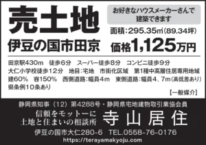 2023年3月9日の伊豆日日新聞に売土地情報を掲載しました。お気軽にお問い合わせください。