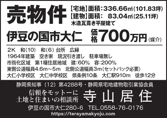 伊豆日日新聞5月1日 不動産 X Facebook はてブ LINE 2025.05.012025.05.02 2025年5月1日の伊豆日日新聞に中古住宅情報を掲載しました。 お気軽にお問い合わせください。