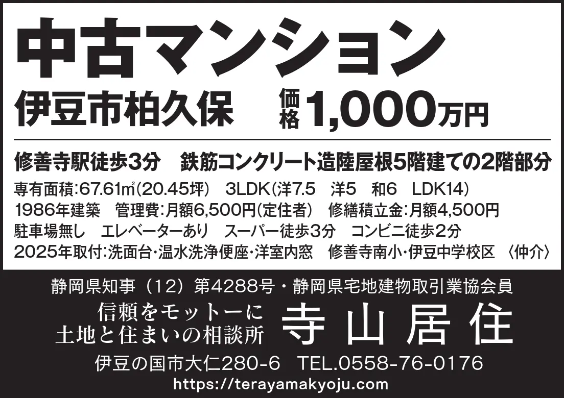 伊豆日日新聞9月11日 不動産 X Facebook はてブ LINE 2025.09.112025.09.12 2025年9月11日の伊豆日日新聞に中古マンション情報を掲載しました。 お気軽にお問い合わせください。